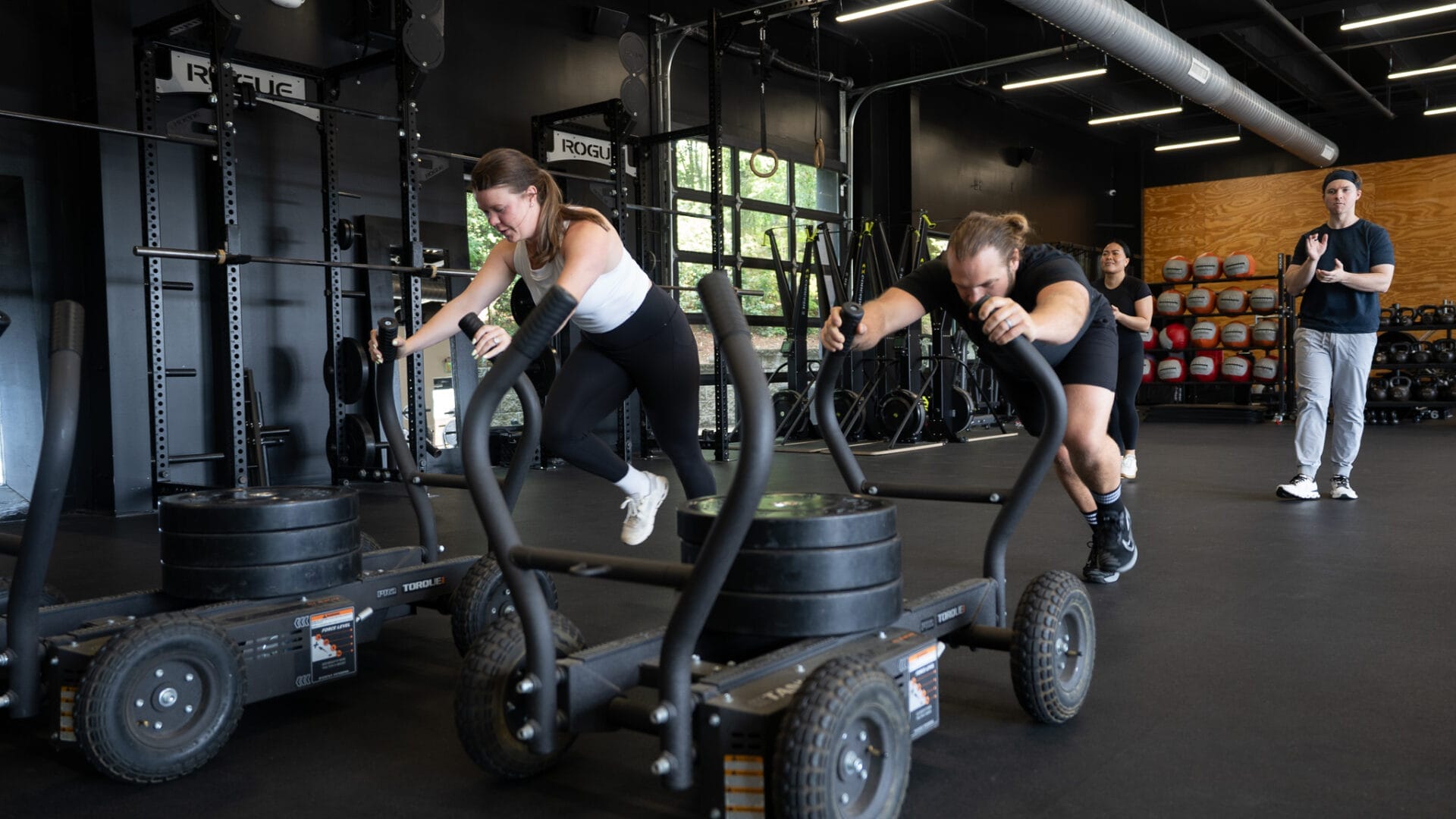 Our new location features a spacious, open-layout facility designed to enhance your training experience. Large garage doors flood the space with natural light and allow us to seamlessly bring our workouts outside. The turf area is ideal for sled pushes, agility drills, and mobility exercises. Plus, our fully equipped locker rooms ensure a convenient and comfortable end to your gym session!
